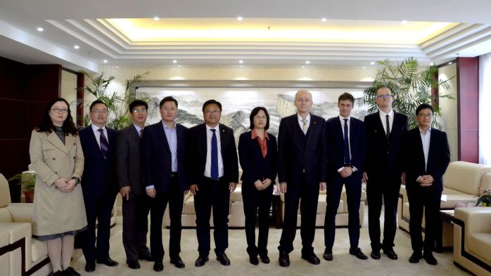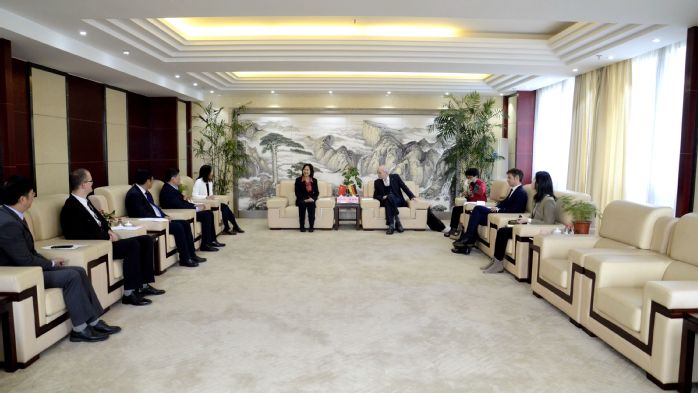 10月22日,新任德国驻上海总领事贺德满(Mr.Pit Heltmann)率代表团访问合肥学院。校长吴春梅会见了贺德满一行,党委委员、宣传统战部部长贾峰,党委委员、教务处处长王晓峰,党政办主任汪文忠,国际交流合作处处长张慧,大学生创新创业教育中心主任刘沛平,中德教育合作示范基地(基金)办公室主任刘金平等参加会见。