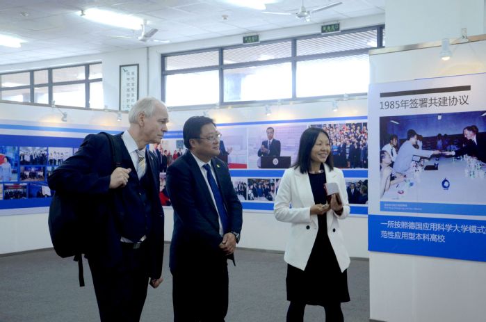 双方围绕中德高等教育合作展开深入交流。座谈会后,与会人员一同参观了中德共建合肥学院成果展。