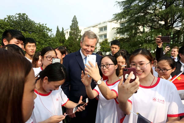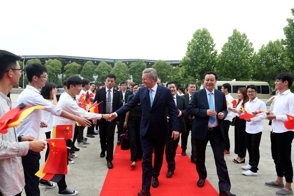 Herr Präsident Christian Wulff hielt an der Universität Hefei eine Rede, in der er auf die Geschichte der Partnerschaft zwischen der Provinz Anhui und dem Bundesland Niedersachsen, die erfolgreiche Zusammenarbeit auf den Gebieten Landwirtschaft, Lebensmittelbearbeitung, Maschinenbau und Industriedesign zurückblickte. Ferner sprach sich Herr Wulff auch für mehr Zusammenarbeit bei internationalen Projekten wie der neuen Seidenstraße aus. Herr Wulff erklärte auch, dass die Bildung eine bedeutsame Rolle spiele und dass die Einführung eines dualen Studiengangs mit der „Continental Klasse“ besonders vorteilhaft für kleine und mittelständische Betriebe in Hinsicht auf die Ausbildung von hochqualifizierten Fachkräften sei.