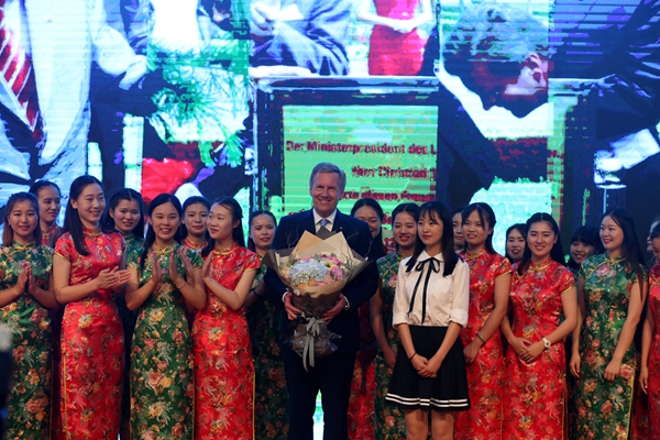 Herr Präsident Christian Wulff weihte das „Existenzgründungszentrum für chinesische und deutsche Jugendliche“ im Rahmen der Modelleinrichtung für die Bildungskooperation ein. Er war auch Zeuge der Unterzeichnung einer strategischen Kooperationsvereinbarung von Prof. Dr. Cai Jingmin und GASME-Generalsekretär Cao Fang. Er bezeugte außerdem die Unterzeichnung eines gemeinsamen Abkommens mit dem Europabüro, das von Cao Fang und Michael Pietz, Exekutivvorsitzender des GASME DACH, unterschrieben wurde. Daran nahmen auch Shen Xin, Leiter der Abteilung für europäische und asiatische Angelegenheiten von CPAFFC, Li Heping, Bildungsminister der Provinz Anhui, und Zhang Lifang, Vizedirektorin des Büros für auswärtige Angelegenheiten der Provinz Anhui, teil.
